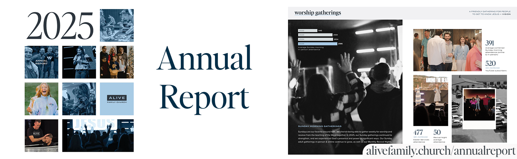 Every year we compile an annual report to help celebrate & capture all your giving helps make possible, and that full annual report can be found at alivefamily.church/annualreport (or via QR code on enclosed Annual Report Page), but here are a couple of highlights: